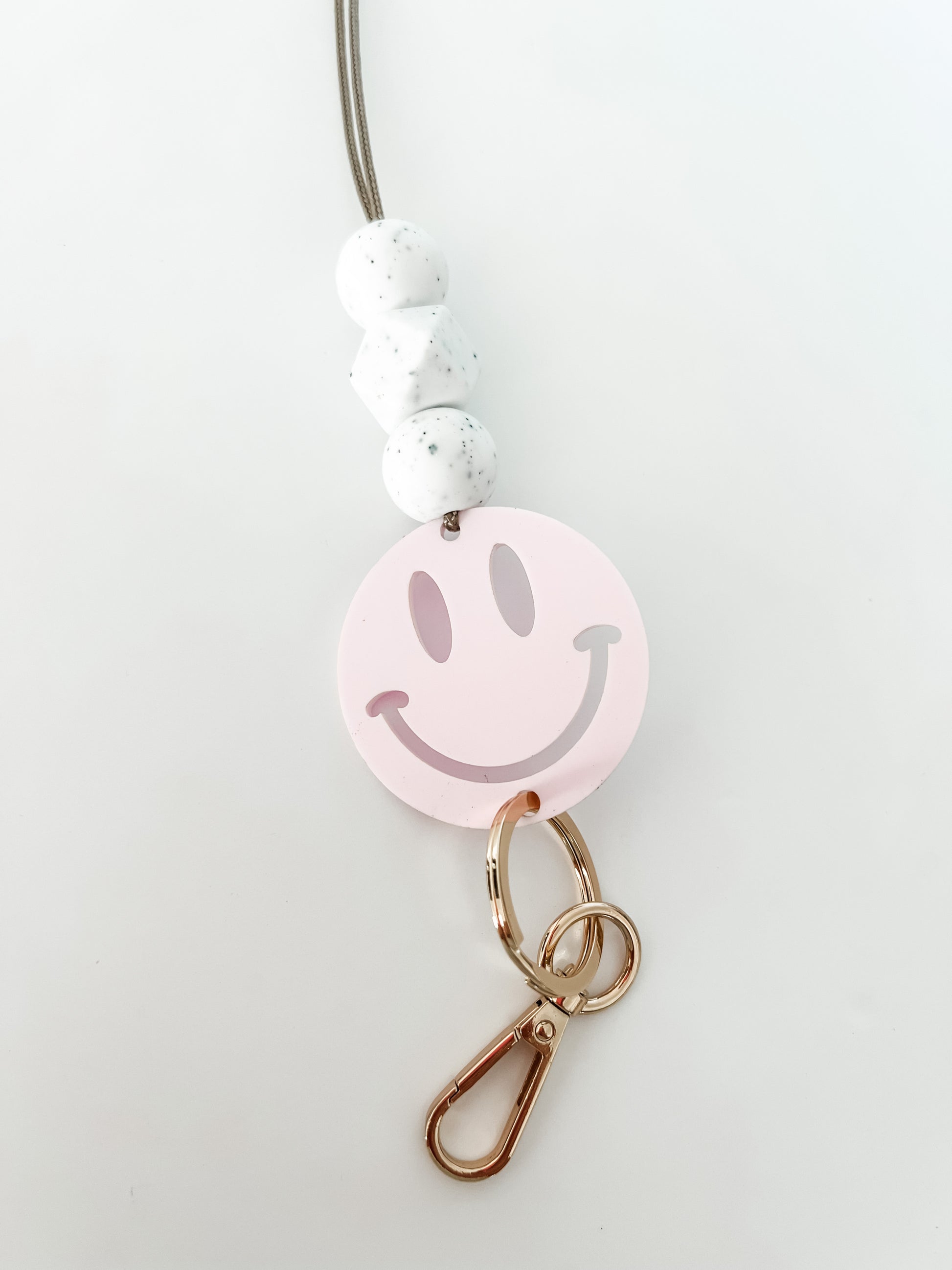 pastel baby pink acrylic lanyard // personalized OR smiley