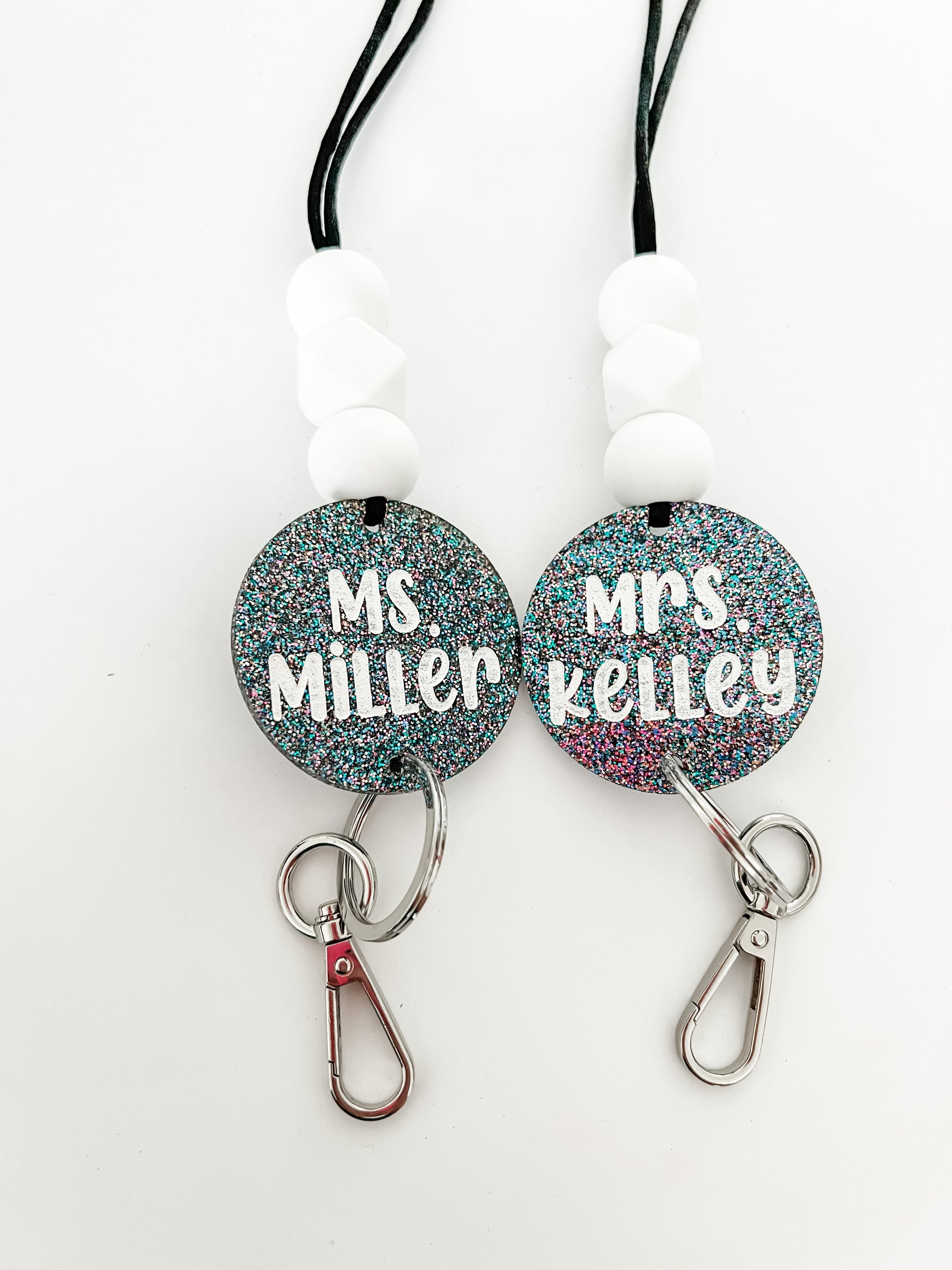 black glitter acrylic lanyard // personalized OR smiley