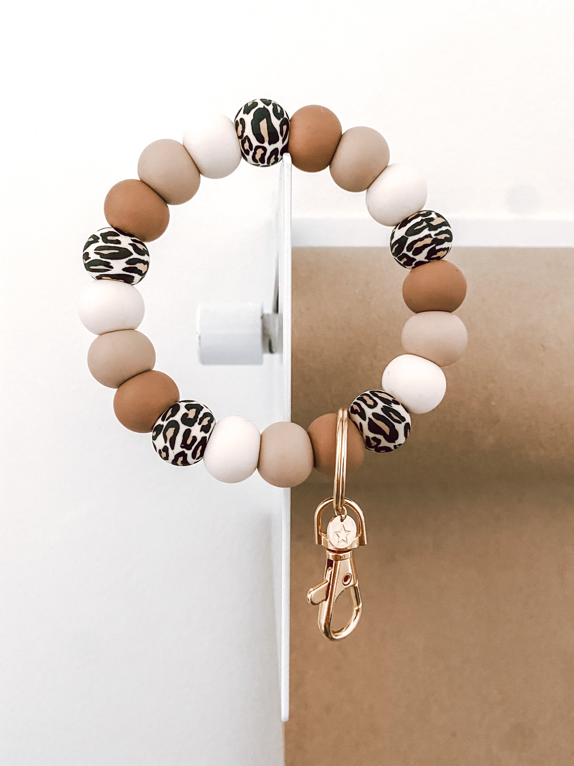 caramel brown, mocha, ivory + leopard bracelet keychain