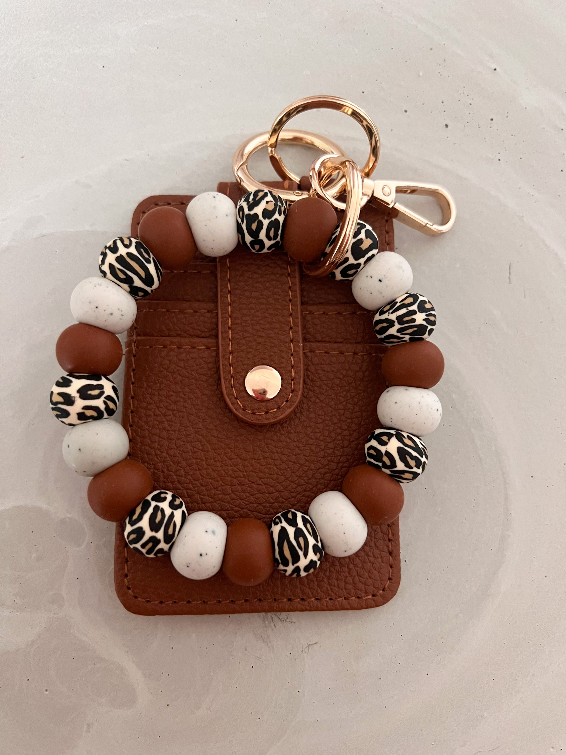 Thank you for your interest in a bracelet keychain. Never lose your keys again with this super functional piece. The main materials used in this item are food grade silicone beads- the perfect material to wipe down and sanitize.