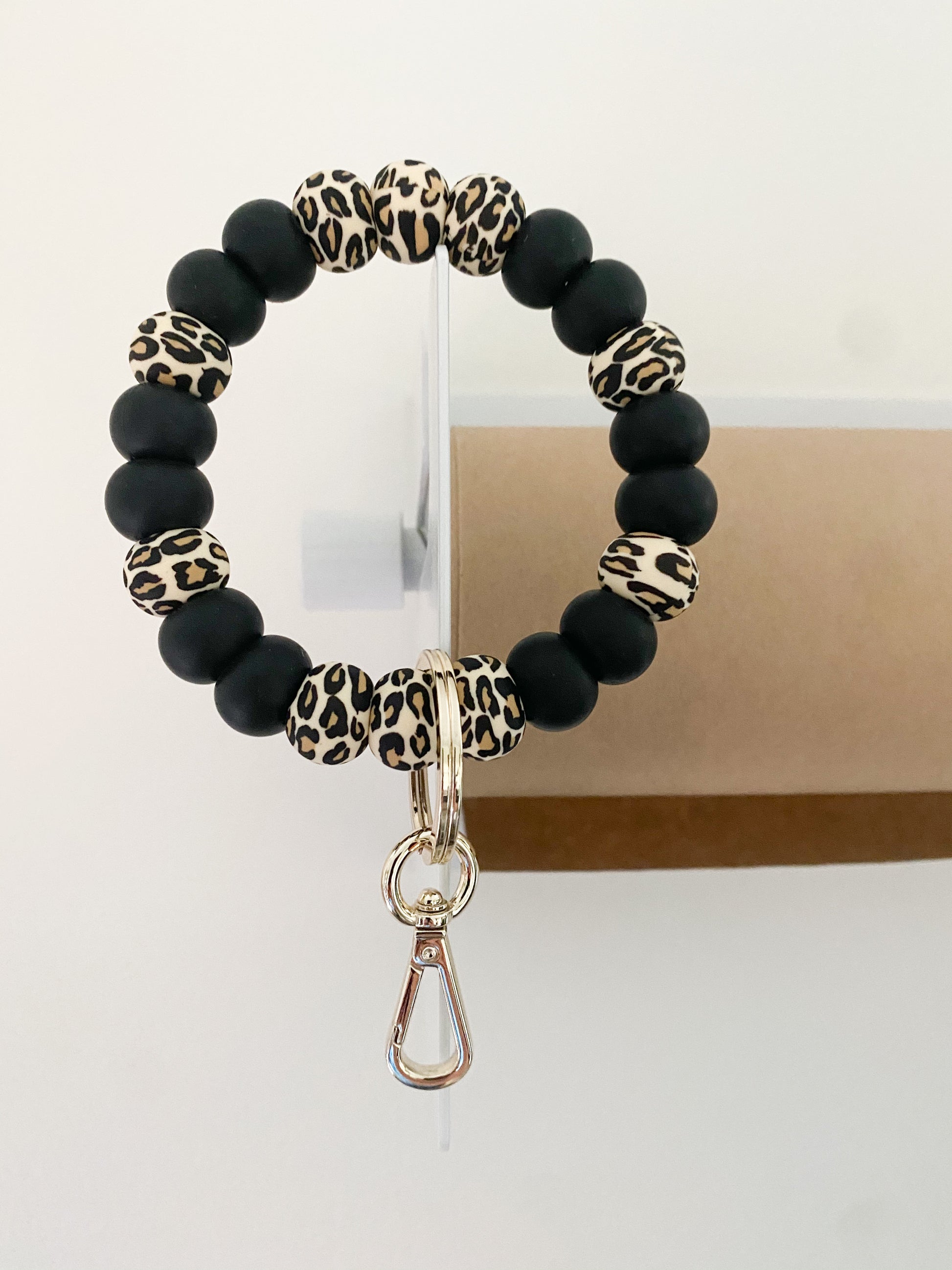leopard + black bracelet keychain
