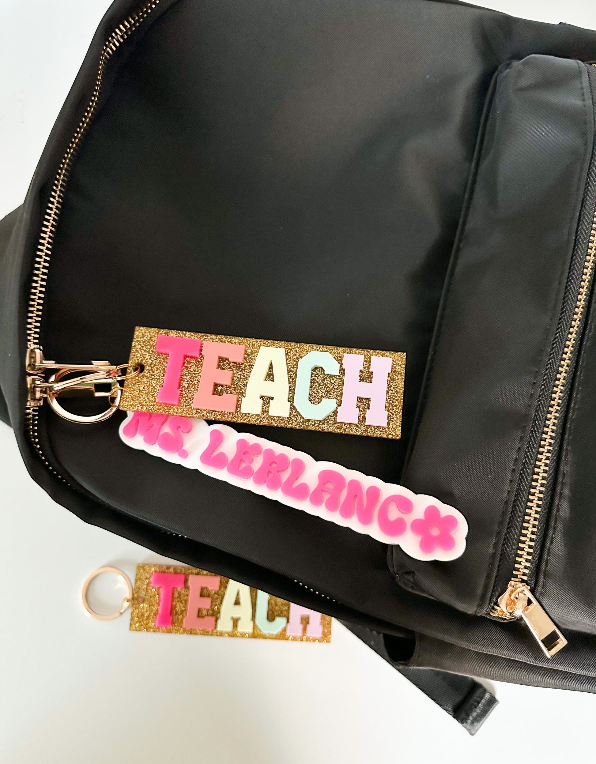 name bag tag / hot pink retro font with white background