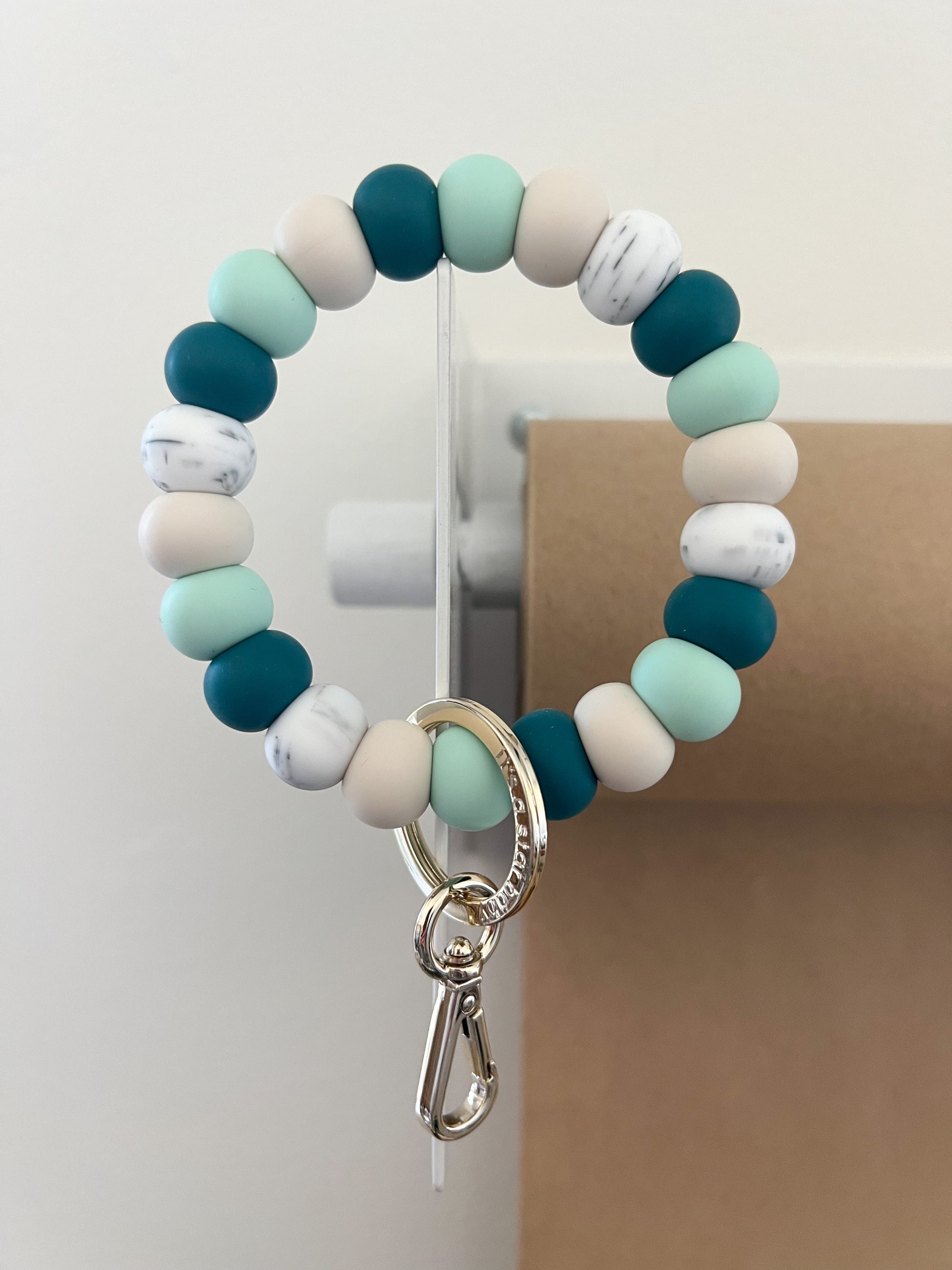 ocean side, sea glass, ivory + marble white bracelet keychain
