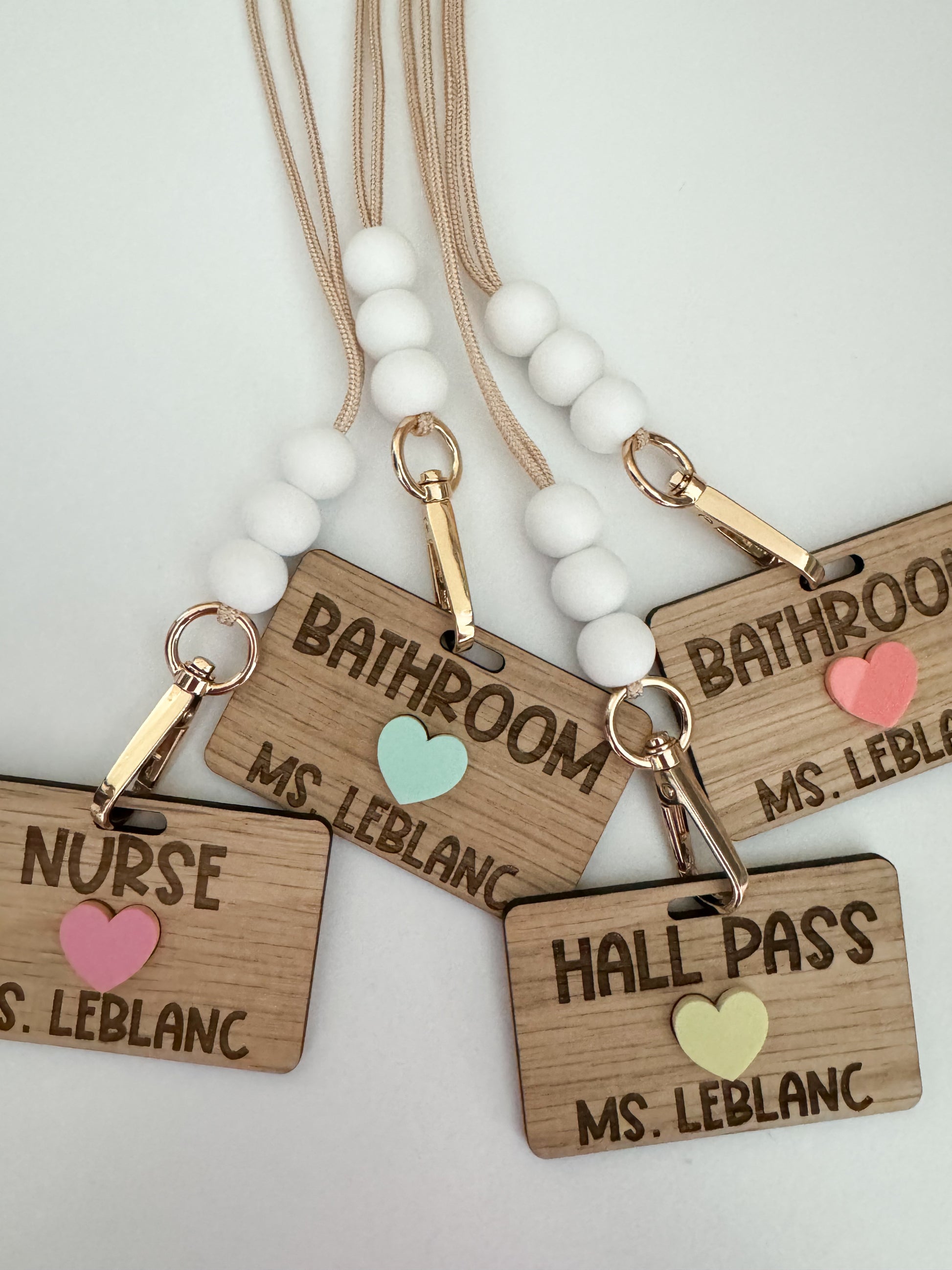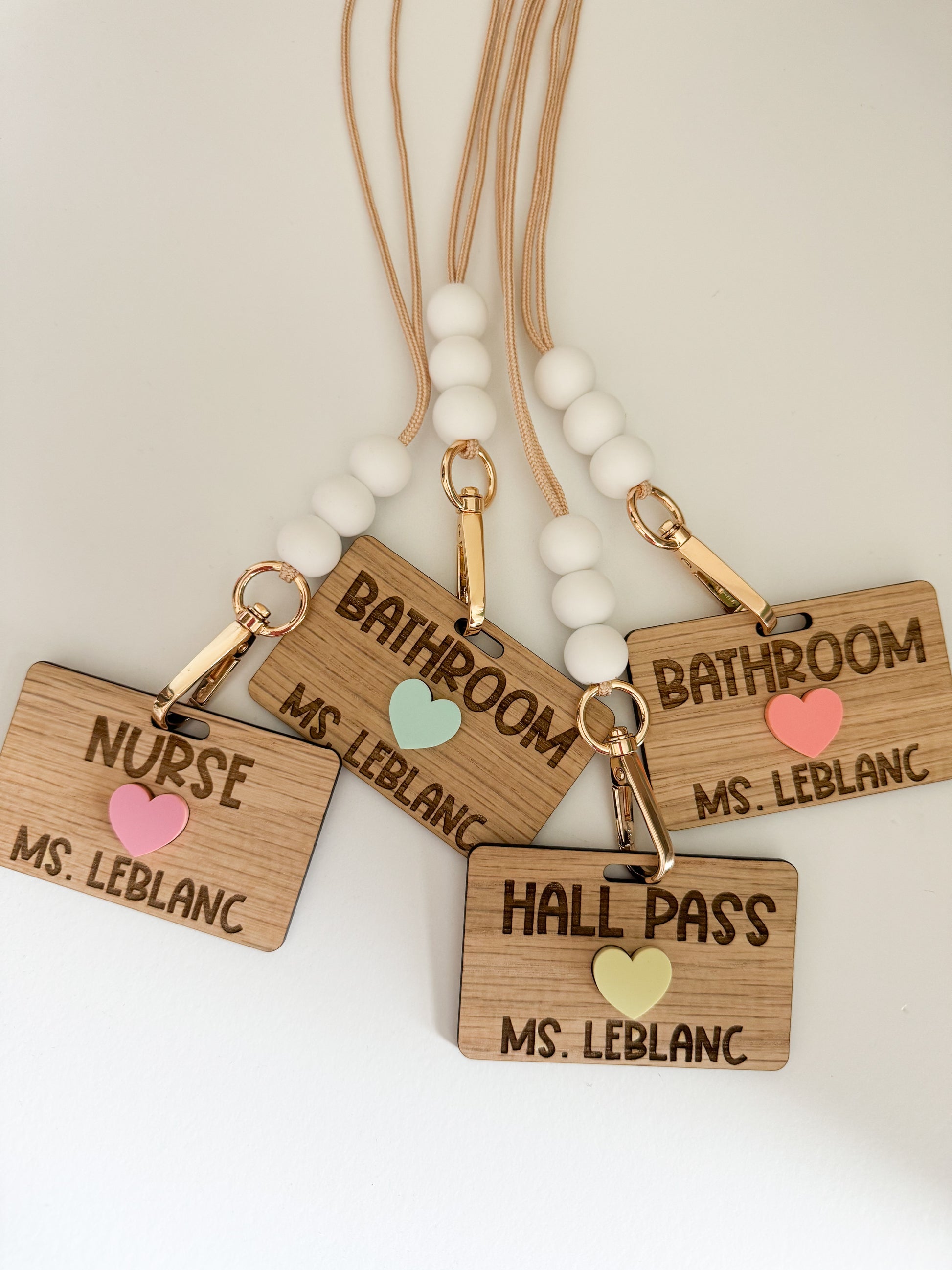 This listing is for a set of 4 hall passes in the wooden smiley design.