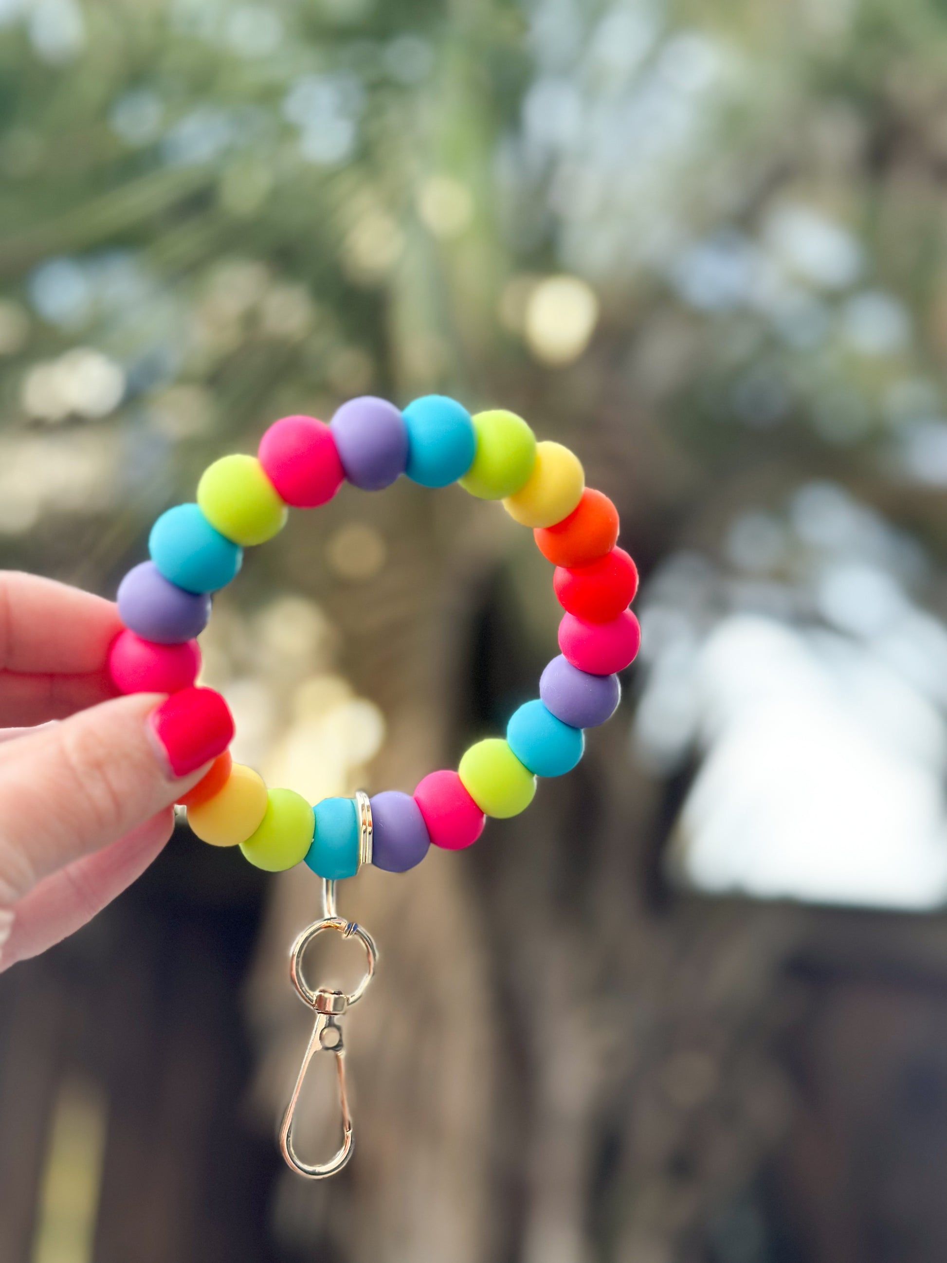 spring break neon rainbow bracelet keychain
