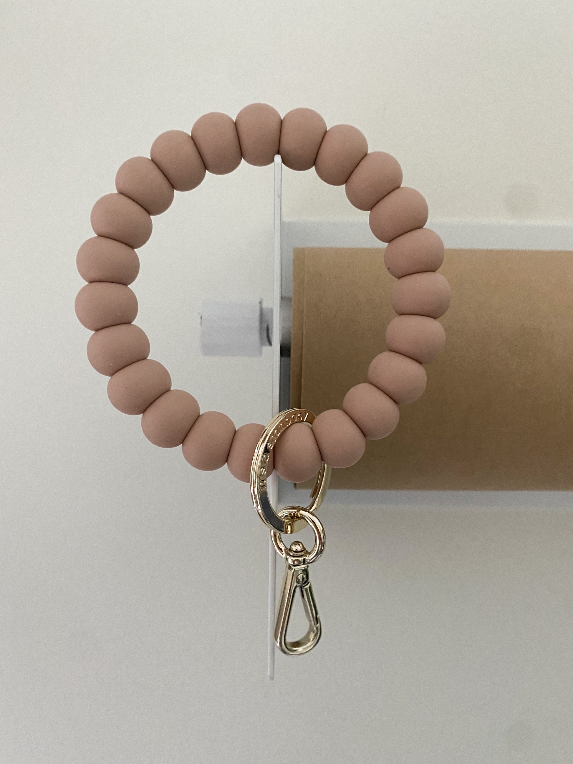 Thank you for your interest in a bracelet keychain. Never lose your keys again with this super functional piece. The main materials used in this item are food grade silicone beads- the perfect material to wipe down and sanitize.